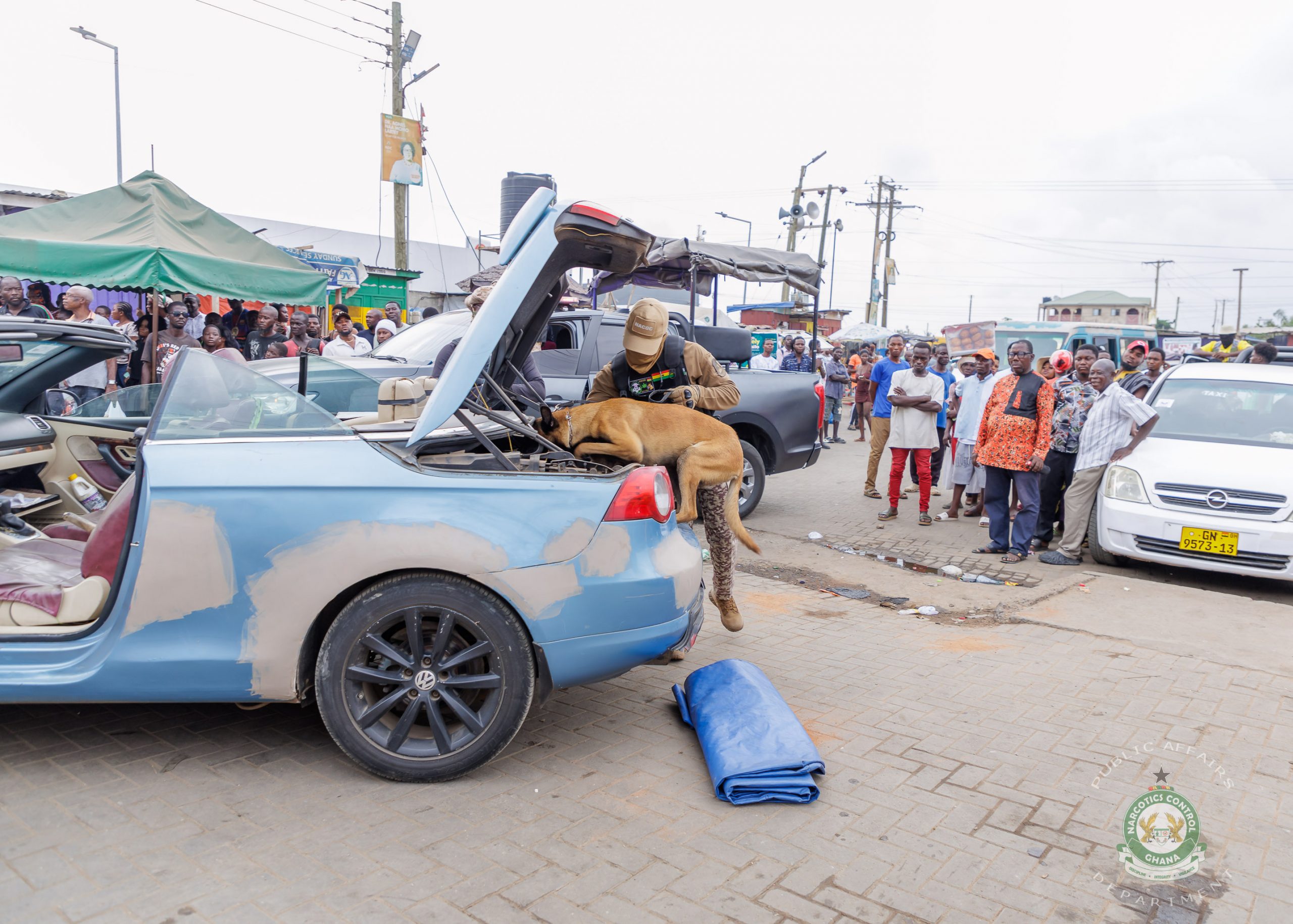 On Boxing Day, the Commission conducted similar raids in Tema Community 1 and Teshie Nungua where dozens of arrests were made and drugs were seized with the help of the NACOC K9 dogs.